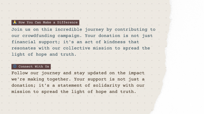 We believe that your involvement and support will help us make this project a resounding success. Together, we can create a memorable and meaningful Christmas for all involved.