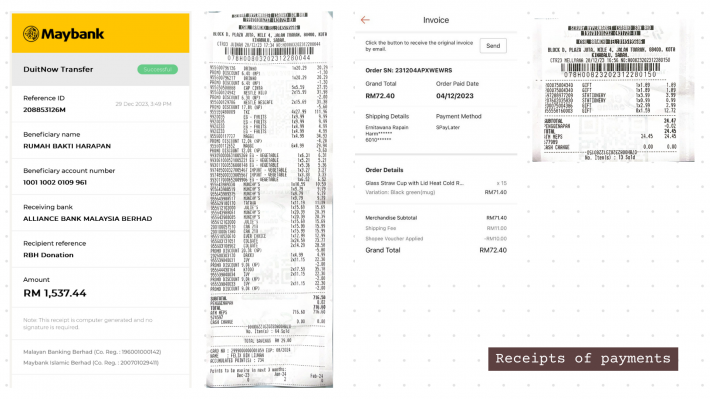 We are committed to complete transparency and accountability in managing the funds collected. Therefore, we are providing you with these statements and receipts to demonstrate the effective utilization of the contributions received.
