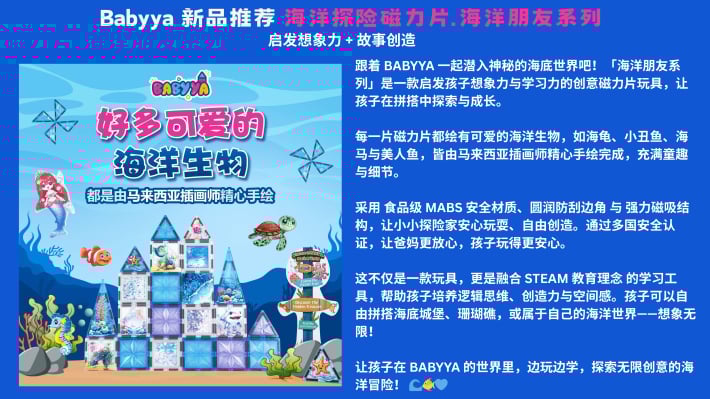 我是 Nicole,一位妈妈,也是 BABYYA 的创办人。 当我看到孩子因为磁力片而专注地创造自己的世界,我意识到“玩”可以成为一种真正的学习方式。 于是我花了两年时间,打造出一款更安全、更耐用的磁力片,只为给孩子一个更好的成长开始。... See More
