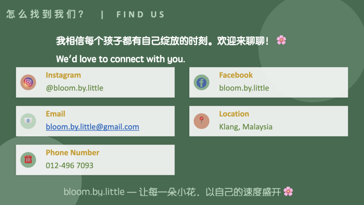 我是 Grace,一名幼教老师,也是 Bloom by Little 的创办人。做这一行越久,我越发现,很多孩子其实不缺学习,而是缺少被好好理解与回应的时刻。我开始思考,如果有一个地方,能让孩子既感到安全,又能自在地接触自然,会不会更接近他们本来的样子?于是,我决定把这个想法,慢慢实现出来。... See More