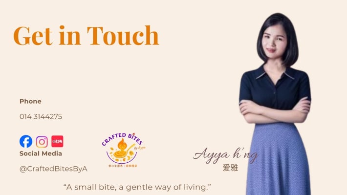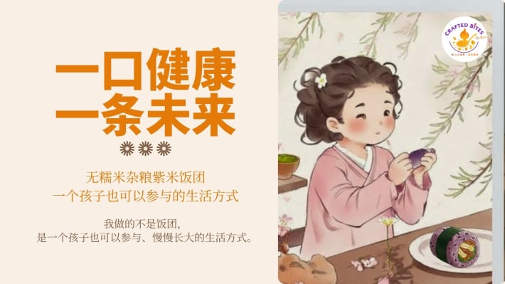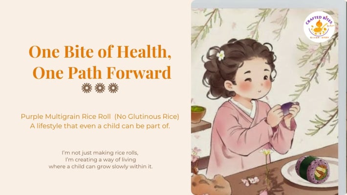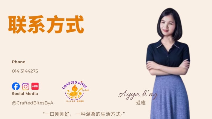 我是爱雅, 三个孩子的妈妈,也是两个特儿孩子的妈妈。 我拥有12年制造业职场经验, 曾在市场营销、销售、采购、物流及人力资源等多个部门工作。 这些经历,让我理解一个企业是如何运作的。 在这段过程中,我也开始尝试小小创业, 摆市集、卖果干、果酱。 孩子从小就跟着我在市集里穿梭。 我也是一个持续学习的人, 拥有不同身份: 和谐粉彩准指导员、天使灵气执行师、OSH TTT Trainer 等。 两年前,孩子确诊 ADHD 与 Dyslexia。 那段时间,我也正处在人生的转折点。 我暂停下来, 不只是寻找一份工作, 而是开始思考—— 有没有一种生活, 是孩子也可以参与的? 机缘之下,我们参与了学校义卖会, 我重新摆起了摊位。 紫米饭团,也在那时慢慢开始。 去年9月尾, 我带着不到6个月大的孩子, 正式走上创业这条路。 这一路,不只是我的成长, 孩子也在一起成长。 紫米饭团之所以与众不同, 源自一个很简单的原因—— 孩子需要更全面的营养。 也让我更深刻体会到: 饮食的多元与原型食物的重要。 因此,才有了今天的 Crafted Bites。 一个以杂粮紫米饭团为核心的品牌, 让食客可以自由选择饭底、配料与酱料。 Crafted Bites 不只是一个餐饮品牌。 我们希望提供更健康的饮食选择, 也希望创造一个空间, 让孩子可以参与、学习,并慢慢建立自信。 一边做食物, 一边经营生活。 慢慢走出一条, 属于自己的路。 I’m Ayya, a mother of three — including two children with special needs. I spent 12 years in the manufacturing industry, working across multiple departments — from marketing and sales to procurement, logistics, and human resources. These experiences gave me a deep understanding of how businesses operate from different perspectives. Along the way, I also started small — setting up market stalls selling dried fruits and homemade products. Even back then, my children were already growing up in this environment, moving alongside me through the markets. I am also someone who loves learning, with experiences as a pastel art instructor, angel reiki practitioner, and OSH trainer. Two years ago, my children were diagnosed with ADHD and dyslexia. At the same time, I was going through a transition in my career. I paused — not just to look for another job, but to search for a different path for my children and our future. By chance, we participated in a school fair, and I returned to setting up a stall again. That was when the idea of the purple rice roll quietly began. Since last September, I began this journey seriously — even with my baby who was less than six months old. This journey is not just about my own growth, but about growing together with my children. What makes our rice rolls different comes from a very personal place. Because of my children, I became more aware of nutrition and the importance of real, balanced food. That is how Crafted Bites was created — a multigrain purple rice roll brand that allows customers to choose their base, ingredients, and sauces. Crafted Bites is built on a simple intention: to offer healthier food choices, and to create a space where children can participate, learn, and grow. I am not just making food. I am building a way of living — where growth happens naturally, and slowly. Cooking, while learning how to live. Step by step, creating a path that is truly our own.