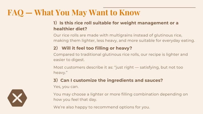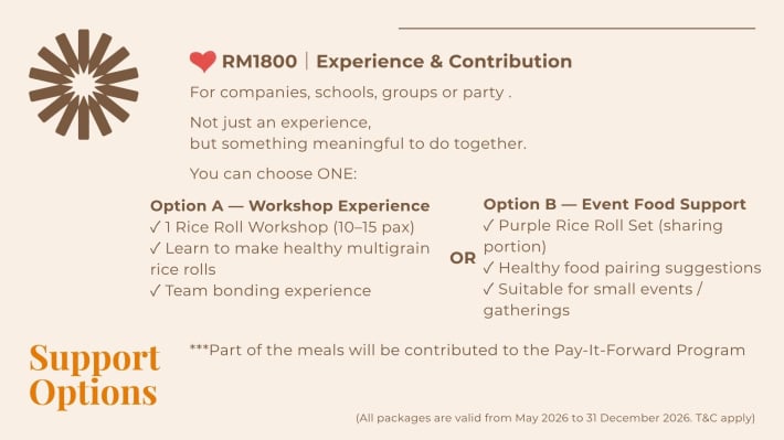 ✓ 1 Rice Roll Workshop (10–15 pax)