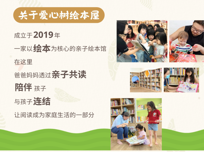 “因为女儿,我开始接触绘本。” 我是两个孩子的妈妈。2015年怀着大女儿的时候,我第一次接触绘本,从那时起就对绘本爱不释手。 在和女儿共读的过程中,我慢慢理解了绘本的价值,也看见它带给我们的幸福感。 当时我发现,身边很少有地方可以让孩子自由接触绘本、安静阅读。于是在2019年创立了爱心树绘本屋,希望打造一个被绘本包围的空间,陪伴自己的孩子,也陪伴更多社区的孩子一起长大。