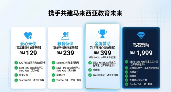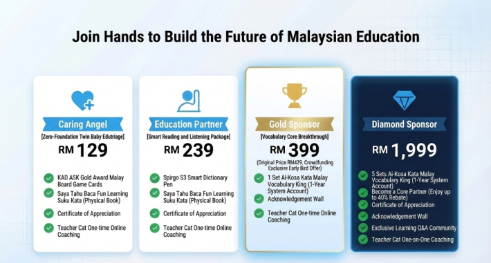 比起从零摸索的初创项目,Ai-KOSA KATA 拥有 Teacher Cat 的 20 年本土前线教学经验与十余年的成熟技术底座双重保障。我们已经把坑都踩过、路都铺好,如果您在众筹后有任何疑问,我们的团队将随时透过更新汇报与 VIP 社群为您解答。请安心成为我们的早期支持者,一起帮大马孩子拔掉马来文这根“绊脚石”!