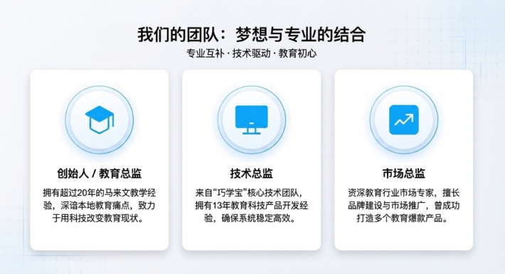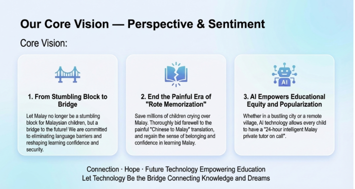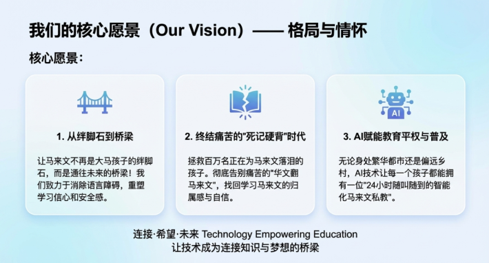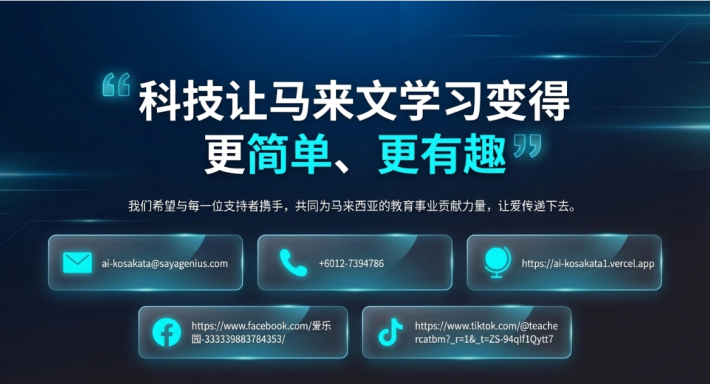 “一个人走得快,一群人走得远。用AI赋能教育,让每个孩子都能轻松学好马来文!”