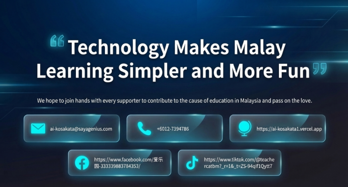 我是 Teacher Cat或猫老师。在马来西亚,绝大多数华小生、国中生、独中生和国际学校学生在马来文上都有个致命伤:会读,但完全不懂意思。 我拥有30年教学经验,创办了爱乐园补习中心,同时具备幼儿教育专业背景与MBA管理思维。多年来,我已经帮助超过10,000名零基础学生摆脱死记硬背,真正掌握马来文Suku Kata拼读与理解意思,顺利通过考试。 传统补习模式效率低、无法规模化,因此我结合实战教学法与AI技术,研发出Ai-KOSA KATA。它不只是普通学习工具,而是通过AI算法精准拆解语义、智能安排复习,把复杂难懂难记的马来文学习变成简单、可复制、可量化的高效系统。 我们的目标是让全马学生不再“苦学”。目前我们正通过众筹启动,诚邀您关注这个能改变大马语言教育生态的赛道。