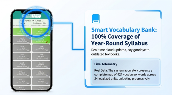 我们的技术底座并非从零开始,而是由 2013 年就已成立、拥有 300 万用户的成熟技术团队(巧学宝)在背后保驾护航。我们向所有支持者郑重承诺:当 2027 年新课本一发布,我们的教研团队将在短短 14 个工作天内,完成全网云端词汇库的同步更新!