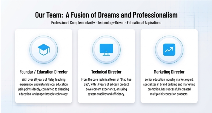 三语优势与全球潜力: 系统完全采用 “三语(华语、马来语、英语)” 界面。这不仅极大地提高了马来西亚国内各族群的市场覆盖率,也为未来将这套经过验证的科学学习方法拓展。