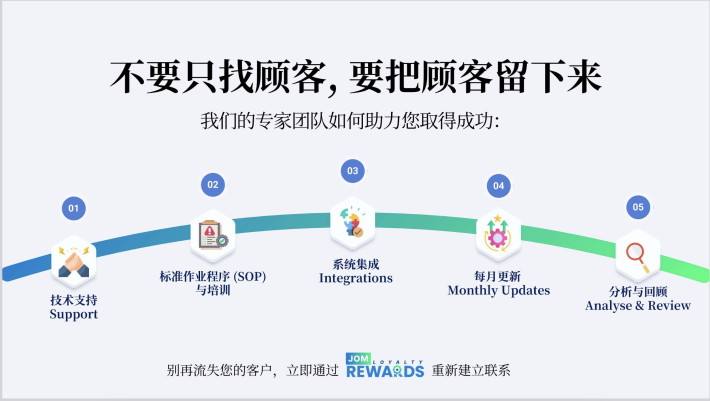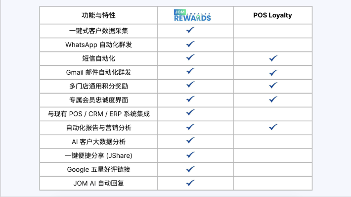 平台同时整合客户数据管理(CRM)、营销自动化以及客户行为分析功能,帮助商家了解顾客消费习惯并优化营销策略。通过数据驱动的营销方式,JOMRewards 能够帮助企业提升顾客忠诚度、增加回头客数量,并显著提高整体营业额。