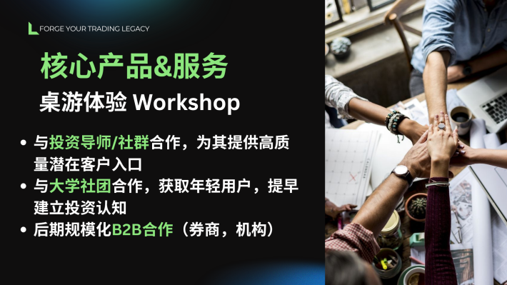 在商业模式上,项目初期以举办线下体验式Workshop为主要收入来源,通过与投资导师、大学社团及相关机构合作,触达目标用户群体。长远来看,本项目不仅是一个教育工具,更有潜力成为连接用户与投资教育市场之间的“前置筛选入口”,实现用户、导师与平台三方共赢。